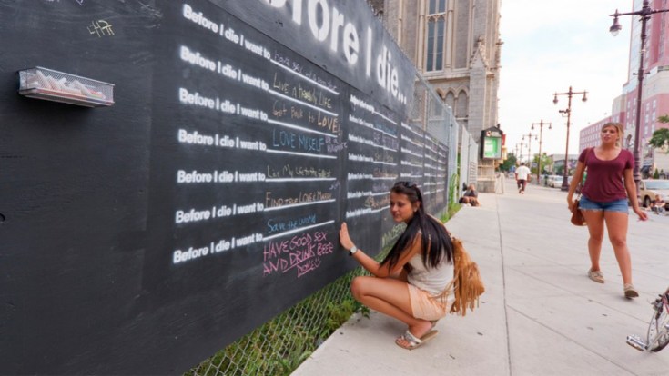 The artist turned the side of an abandoned house in her neighborhood in New Orleans into a giant chalkboard and stenciled it with the sentence “Before I die I want to _______.” So anyone walking by can pick up a piece of chalk, reflect on their lives. What would YOU like to do before you die? (comment below)