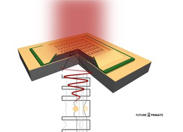 Subtle interactions of electrons and light make them so valuable for technology: ultra-thin systems of semiconductor layers can turn electrical voltage into light. But they can also be used the other way around and serve as light detectors. Until now, it has been hard to couple light into these layered semiconductor systems. Scientists at Vienna University of Technology solved this problem. They used metamaterials, which are able to manipulate light in the terahertz range due to their special microscopic structure.