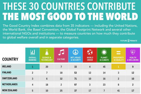 “The idea of the Good Country Index is pretty simple: to measure what each country on earth contributes to the common good of humanity, and what it takes away. Using a wide range of data from the U.N. and other international organisations, we’ve given each country a balance-sheet to show at a glance whether it’s a net creditor to mankind, a burden on the planet, or something in between.