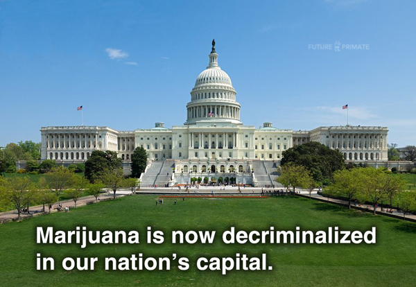 A far-reaching marijuana decriminalization law takes effect in the District of Columbia Thursday that replaces jail time with a $25 fine for the possession of one ounce or less of marijuana, ending a year-long effort in the nation’s capital to reduce severe racial disparities in marijuana law enforcement by D.C. police officers. The “Marijuana Possession Decriminalization Amendment Act of 2014” takes effect tomorrow despite an ongoing Republican-led effort in Congress to block D.C. officials from implementing the law.