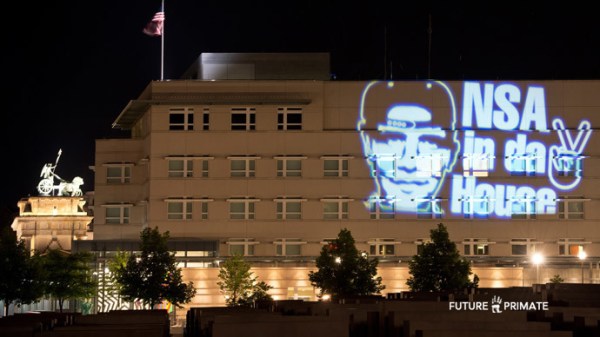 German artist, Oliver Bienkowski made a point of criticizing the USA’s surveillance program by projecting the words ‘NSA in da House’ over the walls of the US Embassy in Berlin. The image featured the US President in a back to front baseball cup, as well as him holding up a sign for peace. The Friday... Continue Reading →