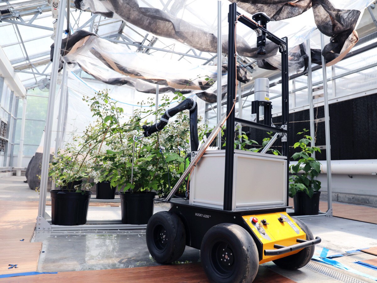 Well, living pollinators, that is. In a greenhouse at West Virginia University, a machine called the BrambleBee is learning to roll around pollinating blackberry bushes, knocking their flowers around (blackberry flowers self-pollinate, so bees or robots just have to jostle them to spread around the pollen). It’s no replacement for bees, but in a world with too many humans and not enough pollinators, robots like this could help feed our kind.