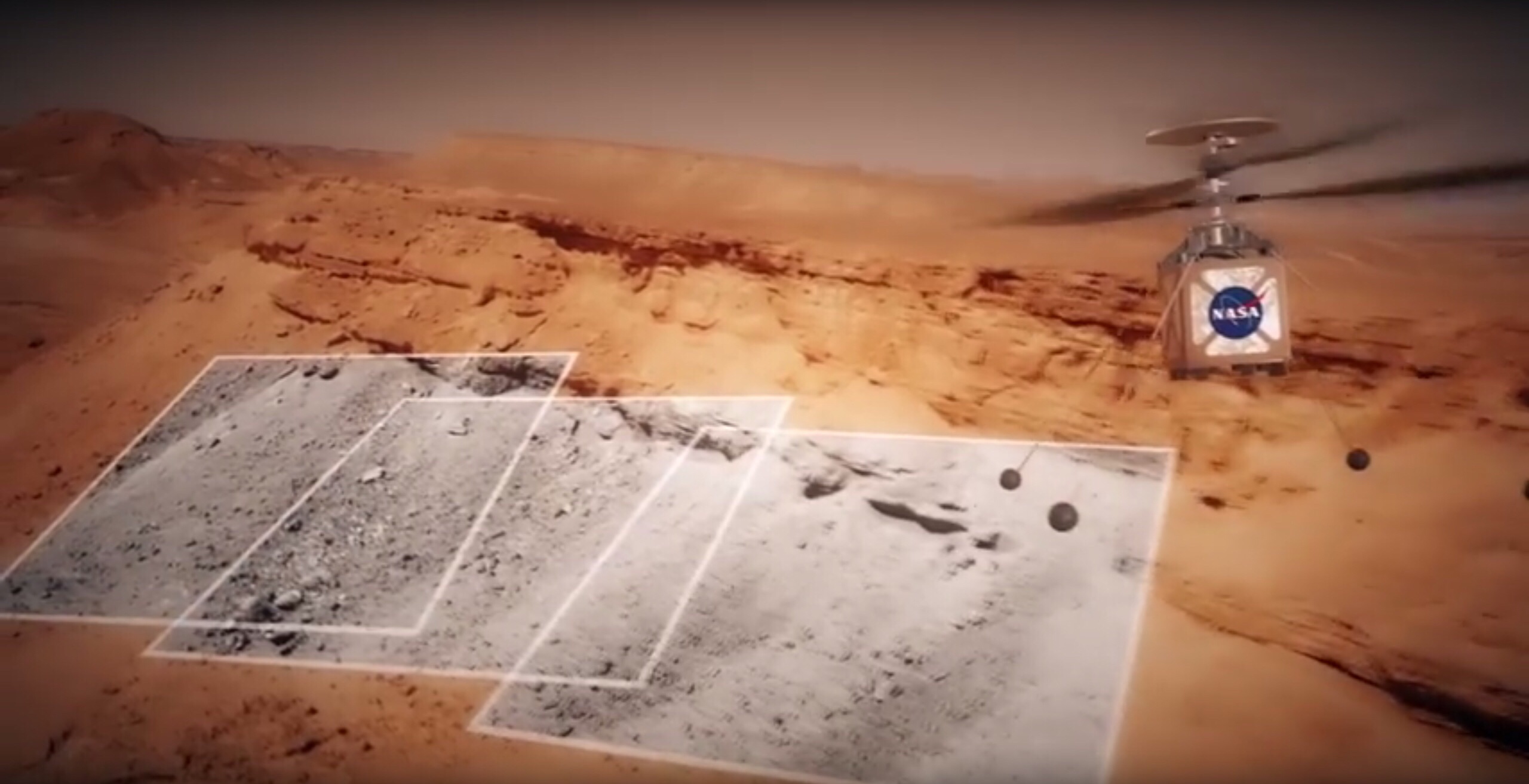Computer-generated animation of the Mars Helicopter in flight. Credit: NASA/JPL-Caltech