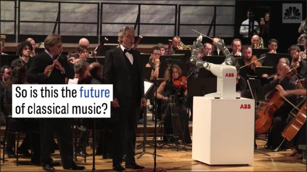 Italy, a country steeped in ancient tradition, has taken a stride forward in the twenty-first century race towards automation, becoming the first country to showcase a robot-conducted orchestra. YuMi, a dual-armed robot designed by ABB, accompanied Italian tenor Andrea Bocelli and conducted the Lucca Philharmonic Orchestra at a gala event in Pisa's Teatro Verdi Tuesday... Continue Reading →