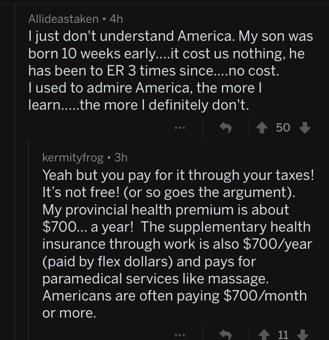 always interesting to watch people from other countries realize what health care is like in America—and Americans explaining it to them. Happy 4th.