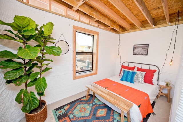 The prototype features a living room, a single bedroom and bathroom, and a small office space.